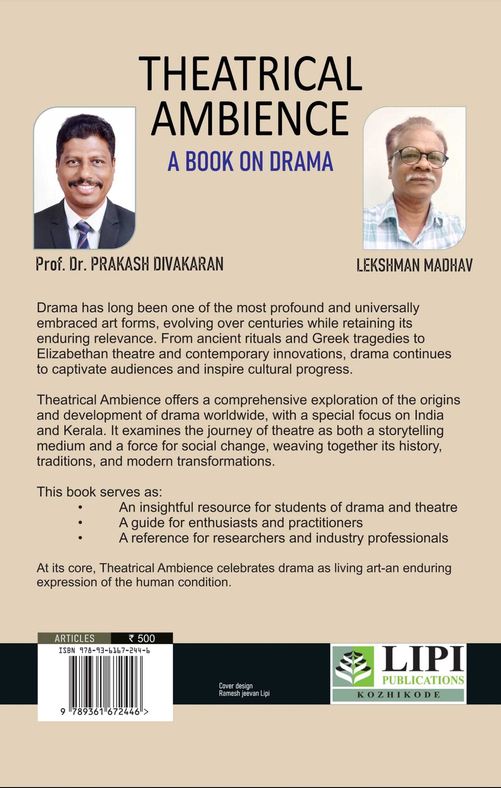 A passionate advocate for theatre, Lekshman Madhav’s profound engagement with the stage culminated in his acclaimed work Theatrical Ambience, a significant contribution to drama appreciation that affirms his standing in Kerala’s cultural landscape. His theatrical interests extend beyond scholarship—rooted in an understanding of performance as a living, communicative art form that belongs as much to the audience as to the creators.
